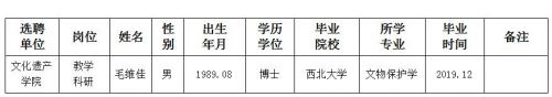 经用人单位推荐,人力资源部审查,学校教学督导及院系相关专家考核,我校拟确定下列人员来校工作。本着公平、公正、公开的原则,现将本次拟选聘人员基本情况公示如下: