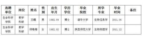 经用人单位推荐,人力资源部审查,学校教学督导及院系相关专家考核,我校拟确定下列人员来校工作。本着公平、公正、公开的原则,现将本次拟选聘人员基本情况公示如下: