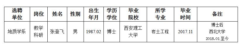 经用人单位及教学督导考核、学校研究,拟同意选聘下列人员来校工作,其聘任关系为A类人事代理。本着公平、公正、公开的原则,现将拟选聘人员基本情况公示如下: