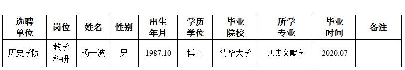 经用人单位及教学督导考核、学校研究,拟同意选聘下列人员来校工作,其聘任关系为A类人事代理。本着公平、公正、公开的原则,现将拟选聘人员基本情况公示如下: