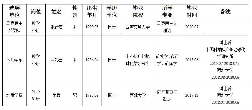经用人单位及教学督导考核、学校研究,拟同意选聘下列人员来校工作,其聘任关系为A类人事代理。本着公平、公正、公开的原则,现将拟选聘人员基本情况公示如下:
