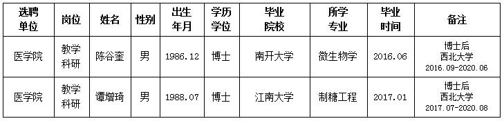经用人单位推荐,人力资源部审查,学校教学督导及院系相关专家考核,我校拟确定下列人员来校工作。本着公平、公正、公开的原则,现将本次拟选聘人员基本情况公示如下: