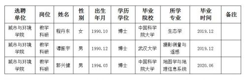 经用人单位推荐,人力资源部审查,学校教学督导及院系相关专家考核,我校拟确定下列人员来校工作。本着公平、公正、公开的原则,现将本次拟选聘人员基本情况公示如下: