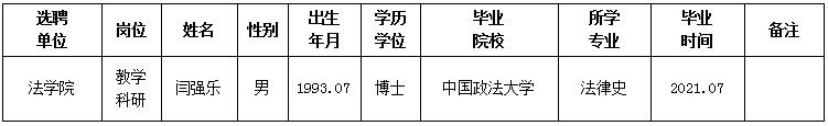 经用人单位推荐,人力资源部审查,学校教学督导及院系相关专家考核,我校拟确定下列人员来校工作。本着公平、公正、公开的原则,现将本次拟选聘人员基本情况公示如下: