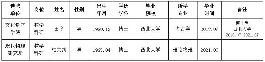 各单位或个人如对上述人选存有疑问,可在2021年6月27日前以书面形式向人力资源部反映。反映材料须实名提交,以便我部核实并反馈,我们将严格保密。(公示期结束后,如无异议,本人持三方协议、身份证、毕业生就业推荐表在岗位聘用办公室签订就业协议;或将上述材料邮寄至我处,邮寄地址:陕西省西安市长安区学府大街1号西北大学人力资源部)