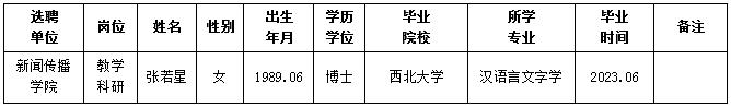经用人单位推荐,人力资源部审查,学校教学督导及院系相关专家考核,我校拟确定下列人员来校工作。本着公平、公正、公开的原则,现将本次拟选聘人员基本情况公示如下:
