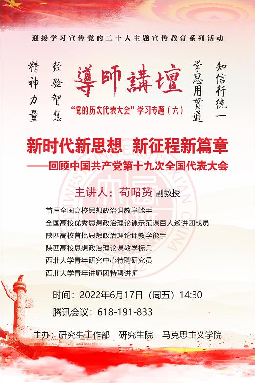 导师讲坛“党的历次代表大会”学习专题(六):新时代新思想、新征程新篇章——回顾中国共产党第十九次全国代表大会