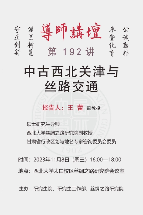 导师讲坛第192讲:中古西北关津与丝路交通