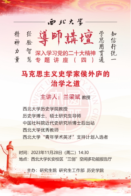 导师讲坛“深入学习党的二十大精神”专题讲座(四):马克思主义史学家侯外庐的治学之道