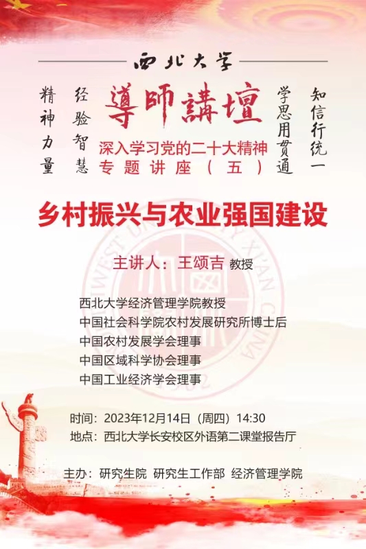 导师讲坛“深入学习党的二十大精神”专题讲座(五):乡村振兴与农业强国建设