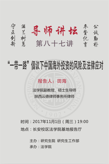 导师讲坛第八十七讲:“一带一路”倡议下中国海外投资的风险及法律应对