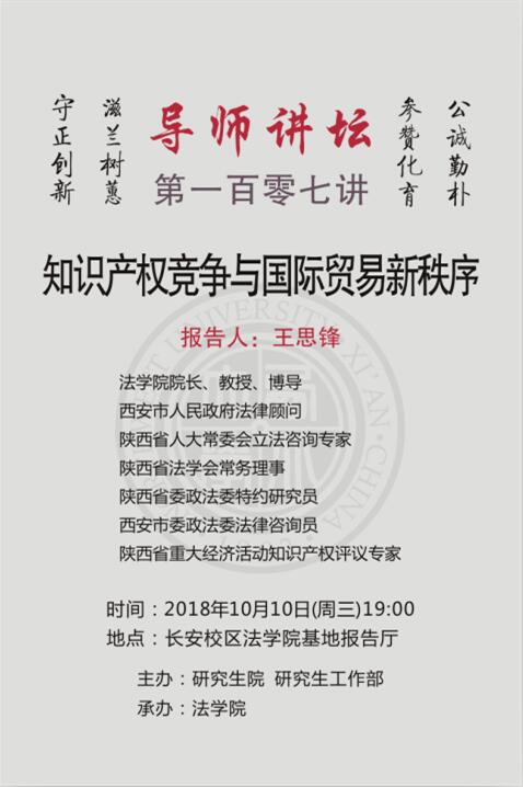 导师讲坛第107讲:知识产权竞争与国际贸易新秩序