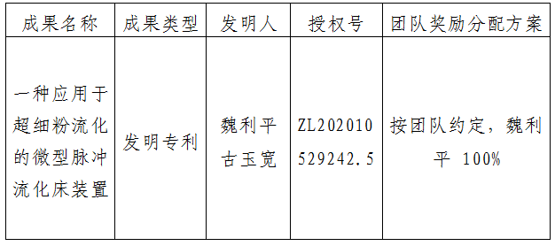 按照《西北大学促进科技成果转化实施办法》(西大科〔2019〕5号)相关规定,拟对我校化工学院魏利平副教授作为成果负责人的1项发明专利权实施转化,现将相关信息公示如下: