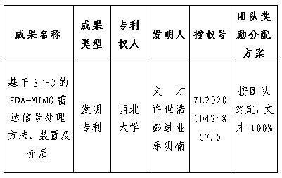 按照《西北大学促进科技成果转化实施办法》(西大科〔2019〕5号)相关规定,拟对我校信息科学与技术学院文才副教授作为成果负责人的1项发明专利权实施转化,现将相关信息公示如下: