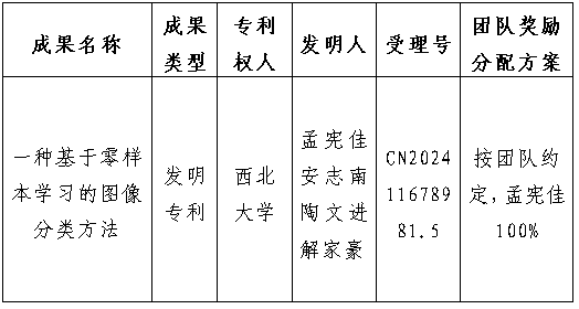 按照《西北大学促进科技成果转化实施办法》(西大科〔2019〕5号)相关规定,拟对我校计算机学院孟宪佳教授作为成果负责人的1项发明专利申请权实施转化,现将相关信息公示如下: