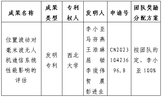 按照《西北大学促进科技成果转化实施办法》(西大科〔2019〕5号)相关规定,拟对我校电子信息学院李小亚副教授作为成果负责人的1项发明专利申请权实施转化,现将相关信息公示如下: