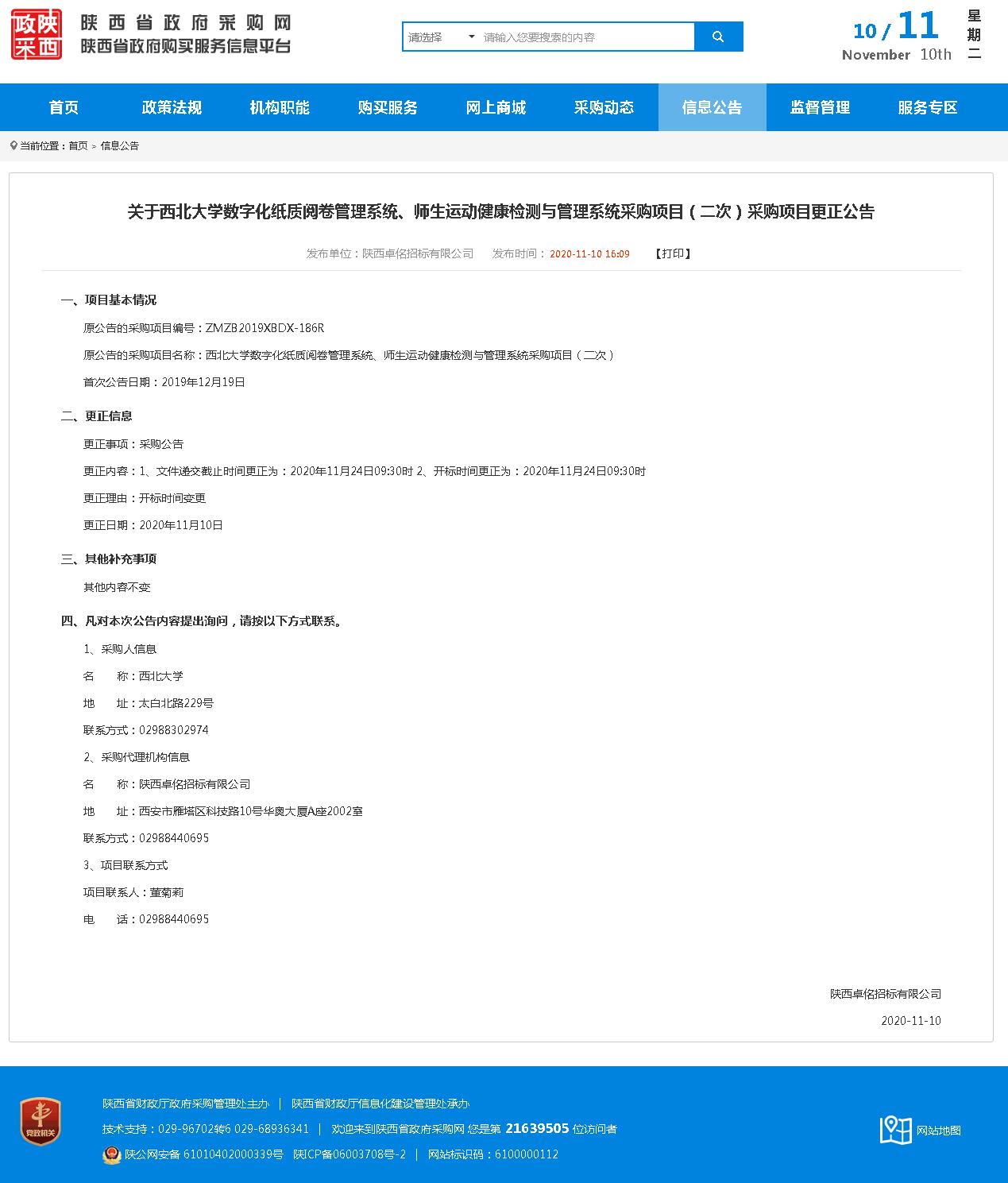 西北大学数字化纸质阅卷管理系统、师生运动健康检测与管理系统采购项目(二次)采购项目更正公告