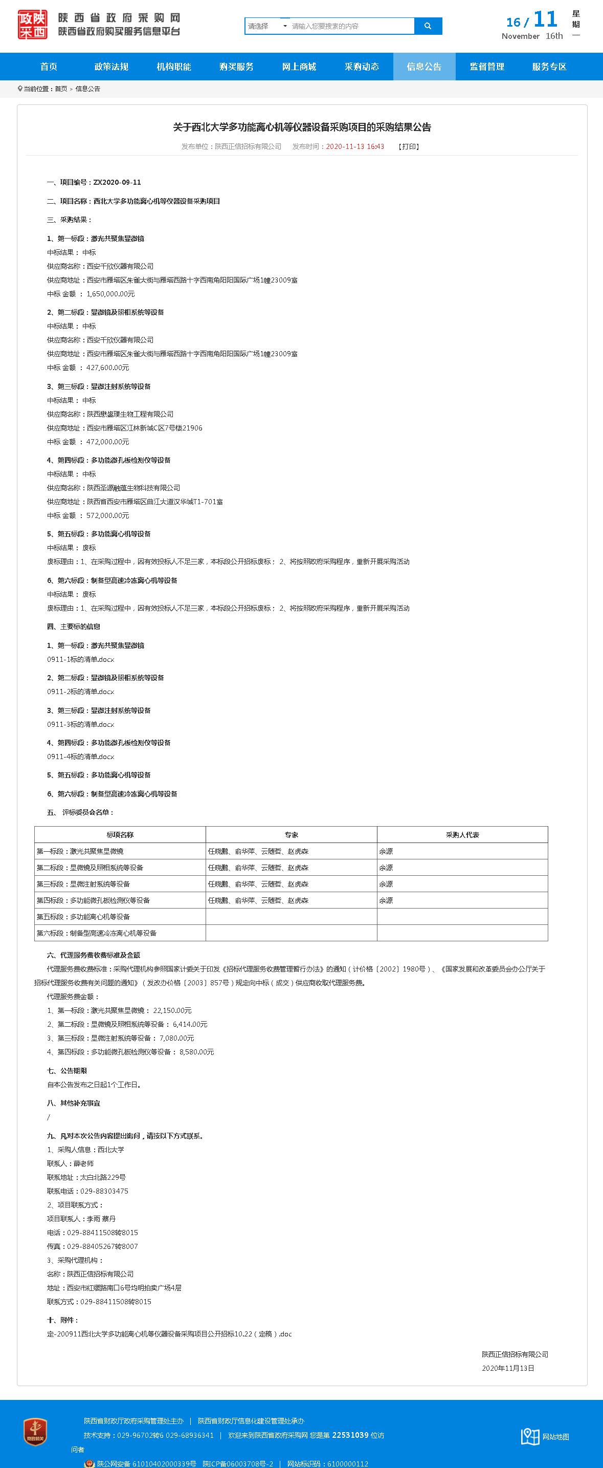 关于西北大学多功能离心机等仪器设备采购项目的采购结果公告