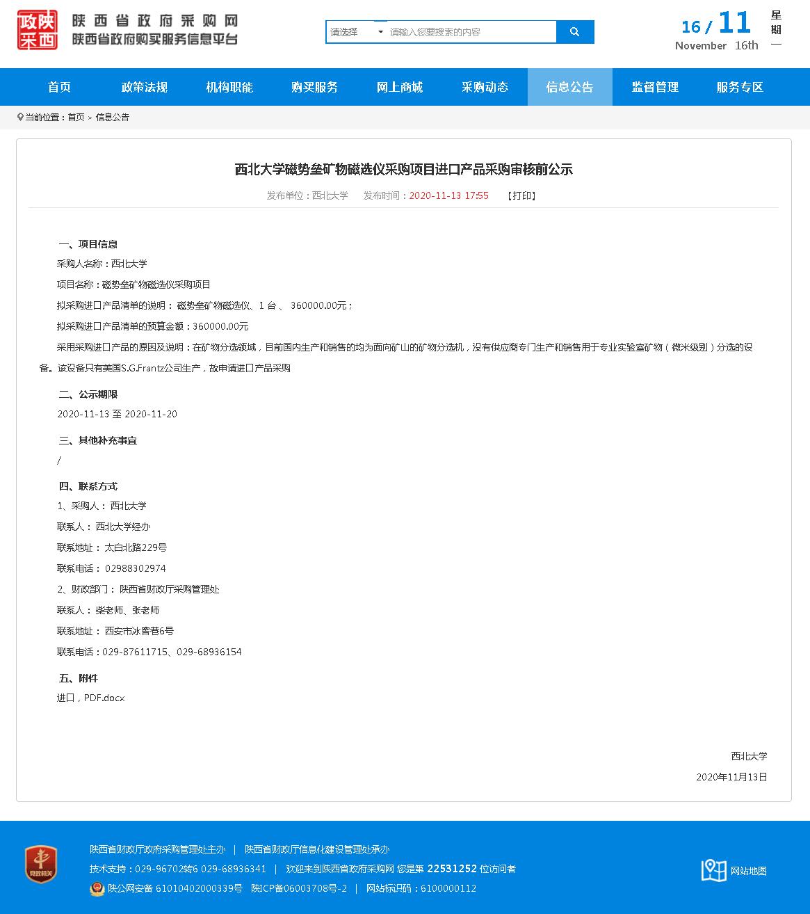 西北大学磁势垒矿物磁选仪采购项目进口产品采购审核前公示