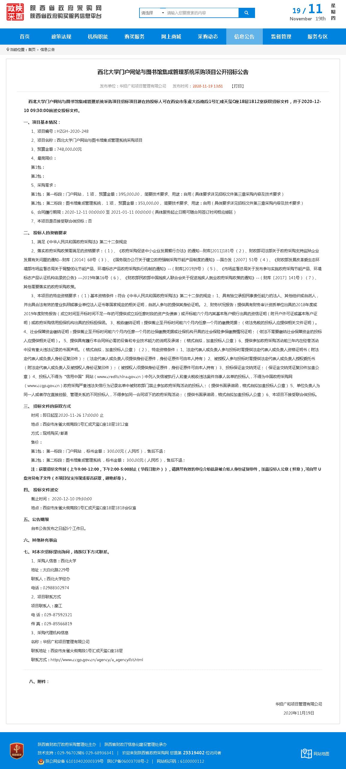 西北大学门户网站与图书馆集成管理系统采购项目公开招标公告