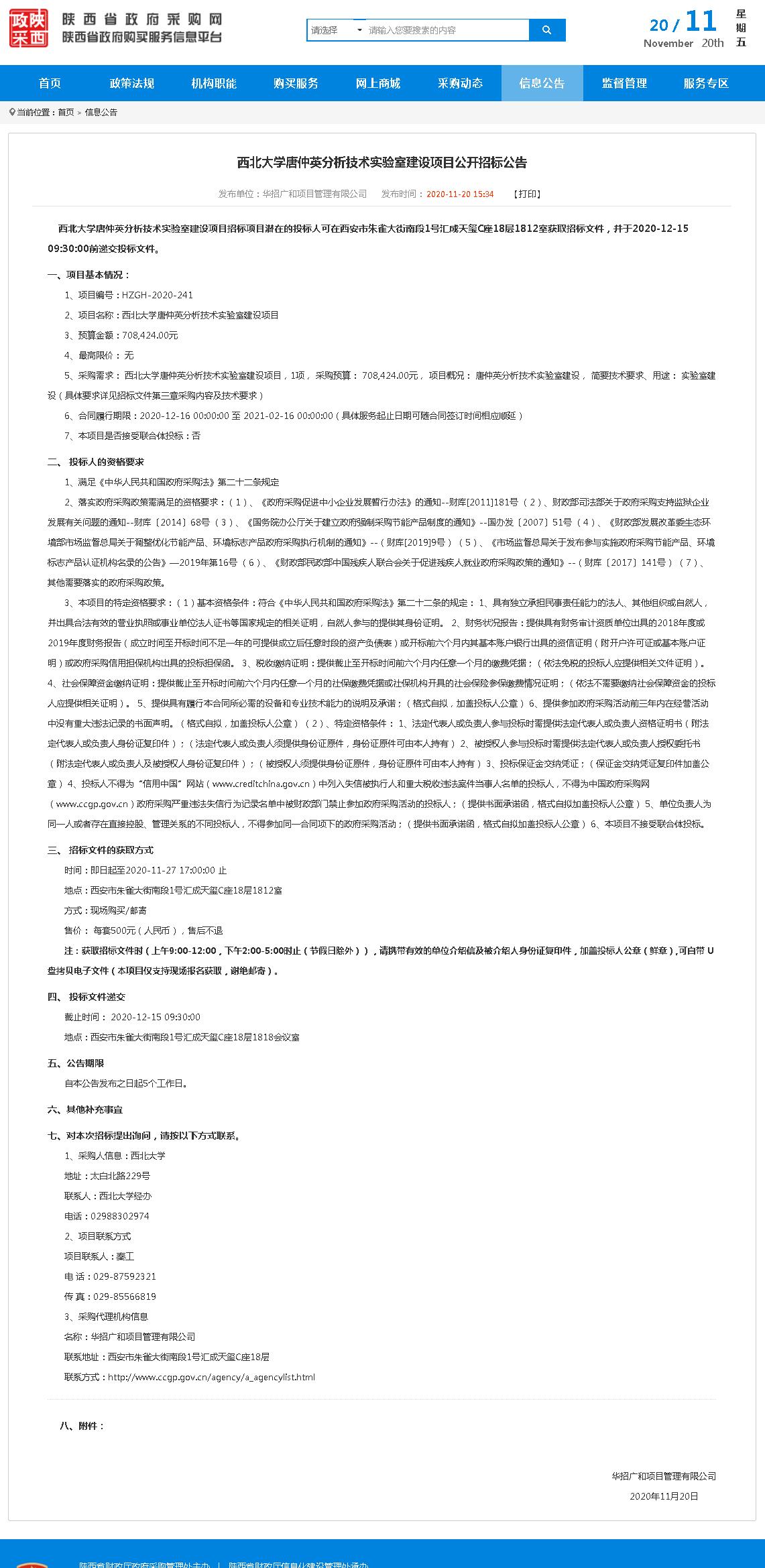 西北大学唐仲英分析技术实验室建设项目公开招标公告
