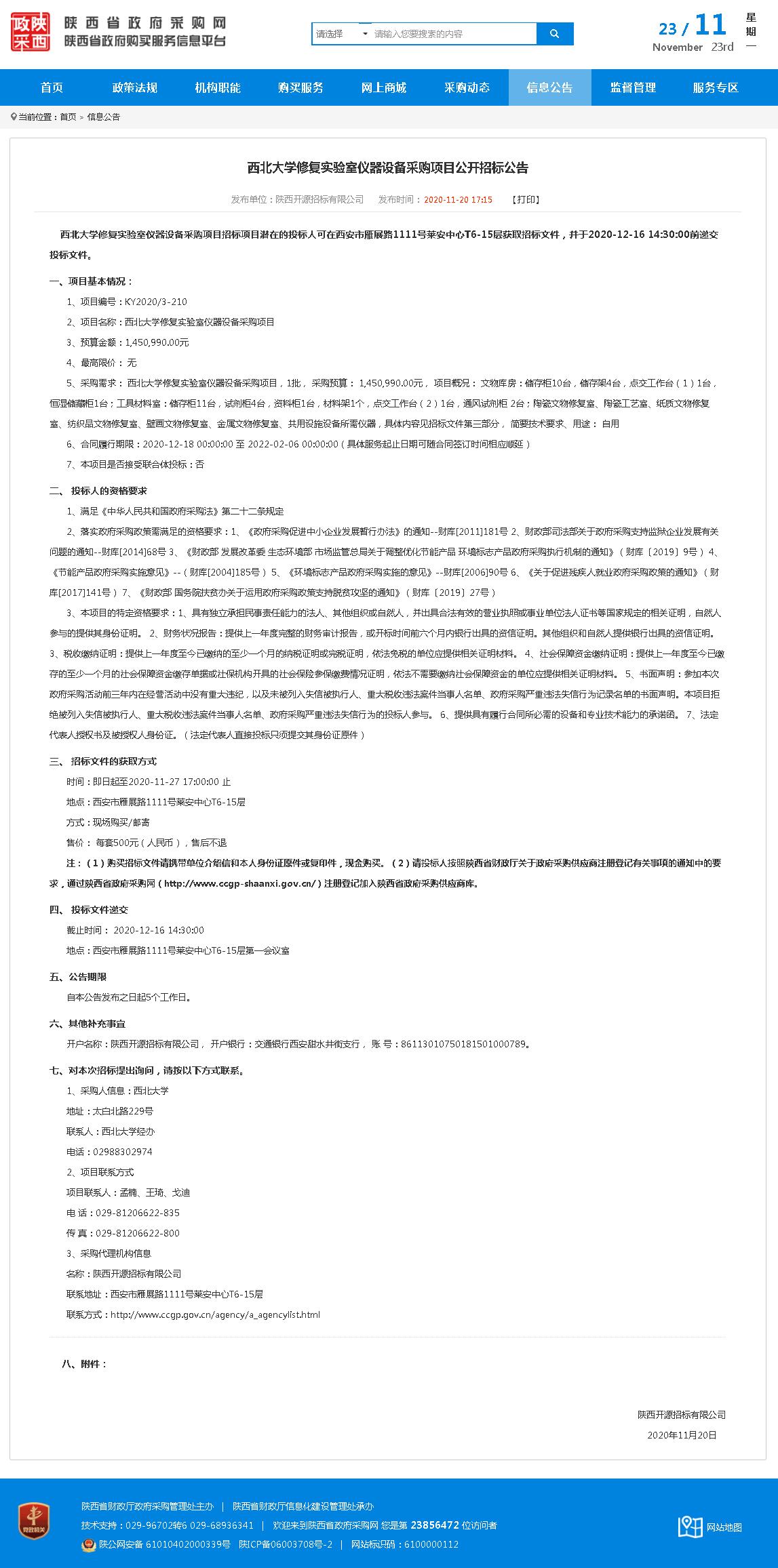 西北大学修复实验室仪器设备采购项目公开招标公告