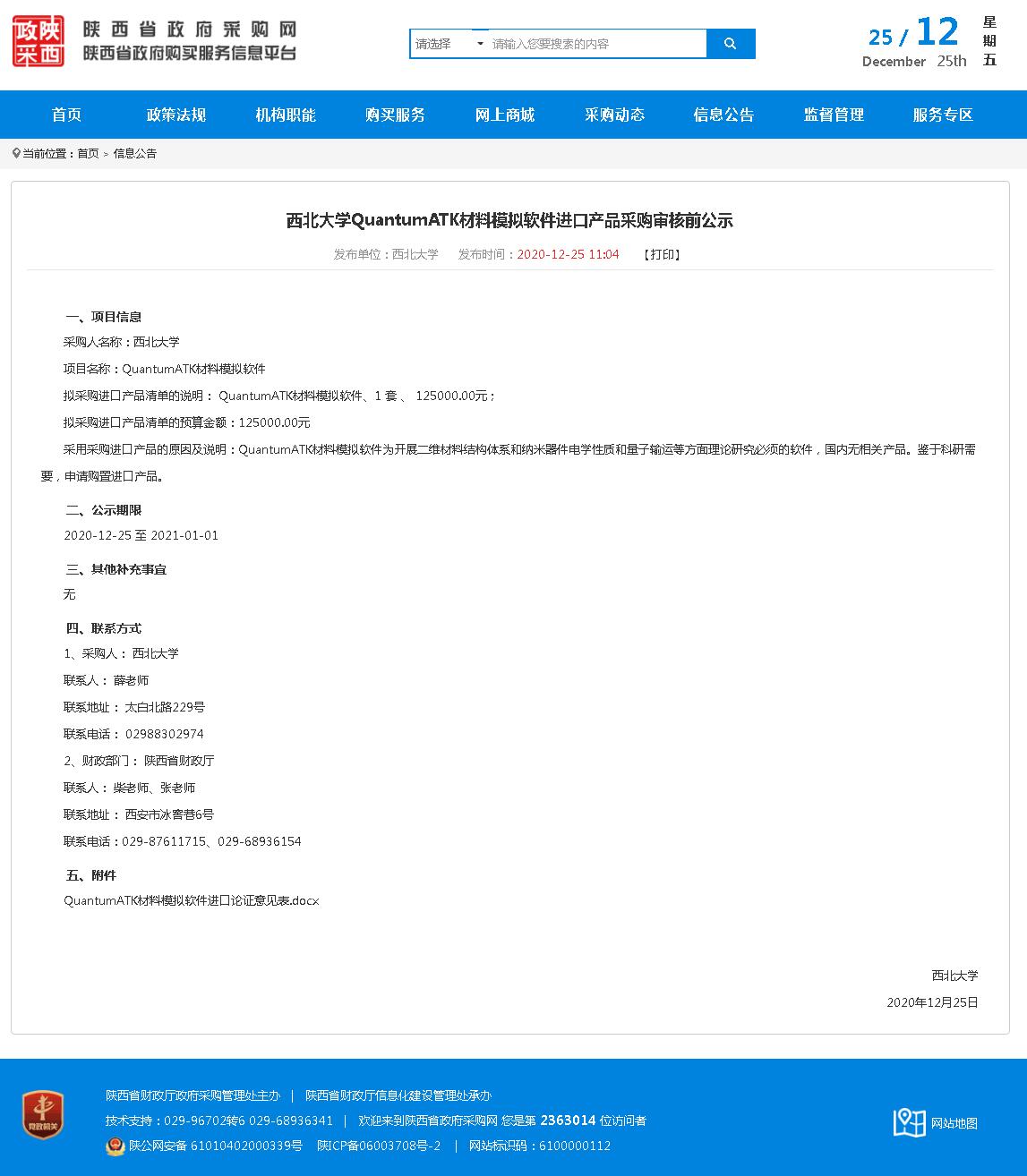 西北大学QuantumATK材料模拟软件进口产品采购审核前公示