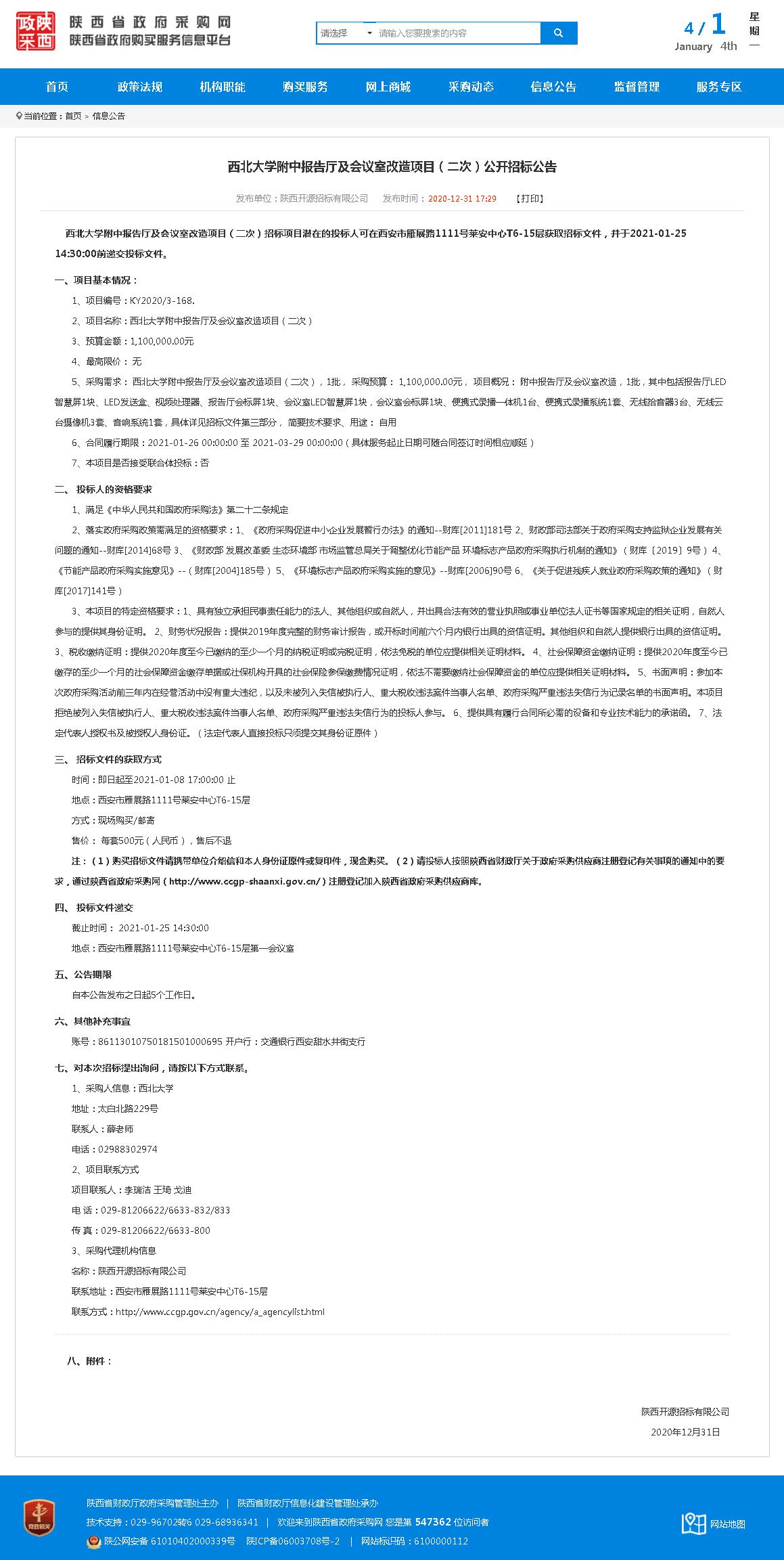 西北大学附中报告厅及会议室改造项目(二次)公开招标公告