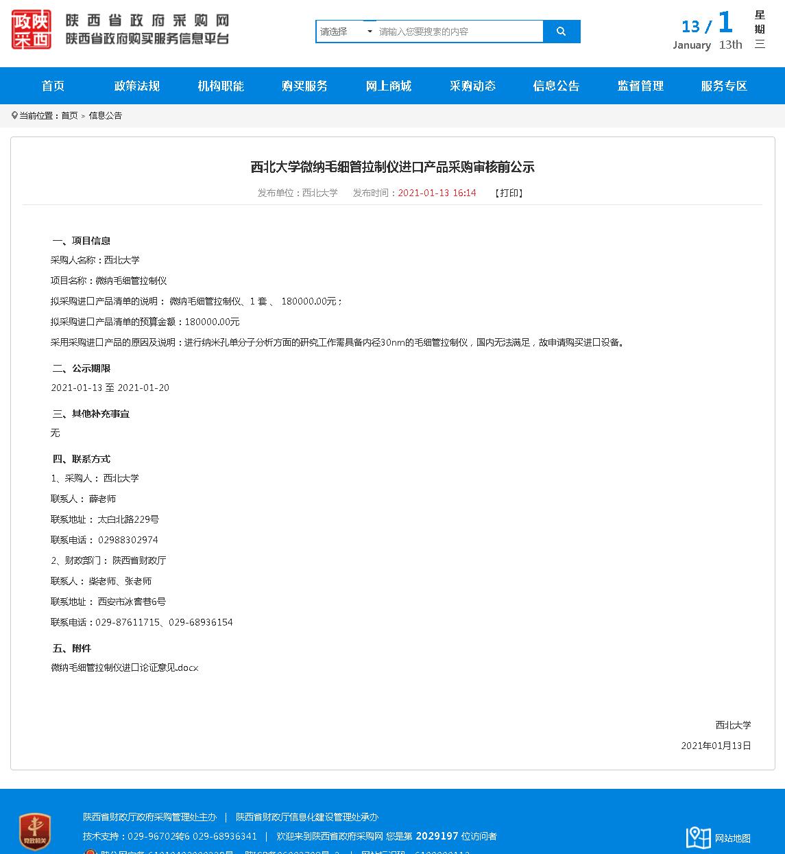 西北大学微纳毛细管拉制仪进口产品采购审核前公示