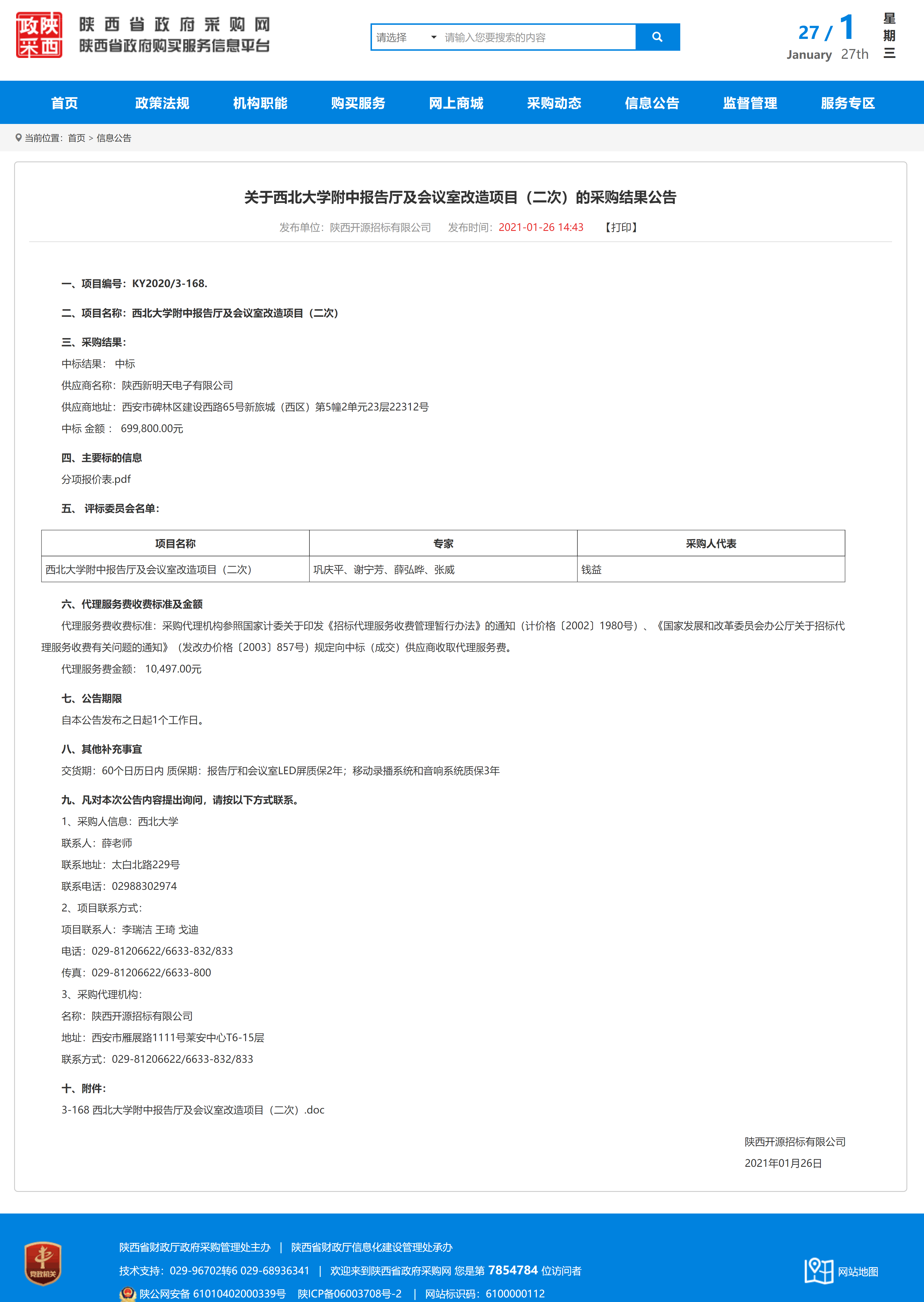 西北大学教师发展中心二期建设项目的采购结果公告
