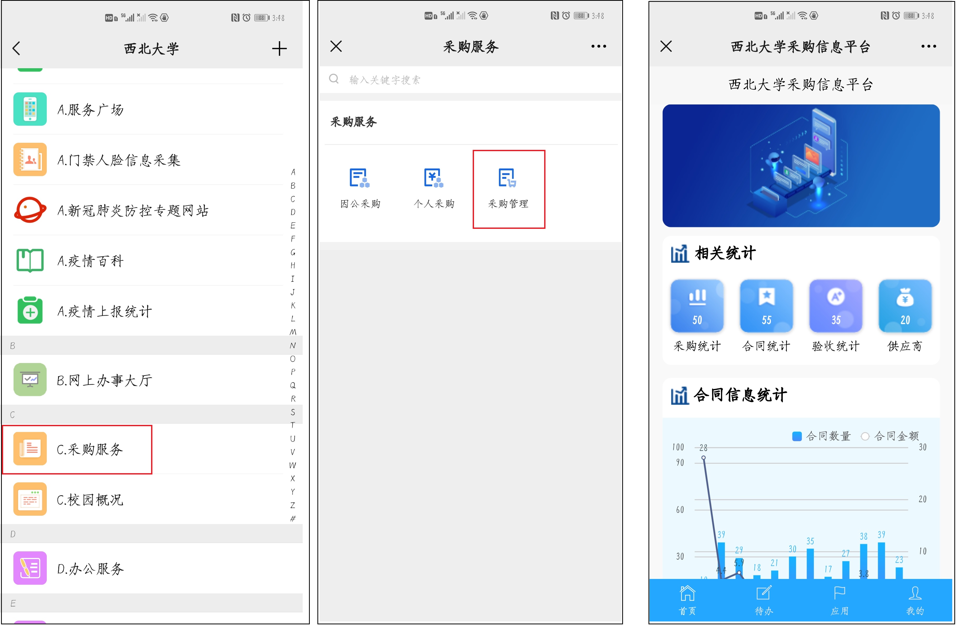 为提高我校采购服务信息化水平,提升服务质量和办事效率,“让信息多跑路,让老师少跑路”,我校建设了“采购管理信息系统”,实现了采购审批-采购实施-合同签署-采购验收的“一站式”服务。该系统已于2021年4月1日正式试运行,负责学校所有3万元及以上采购项目的业务办理,原OA 审批流程不再使用,网站登录网址为:http://cgxt.nwu.edu.cn。