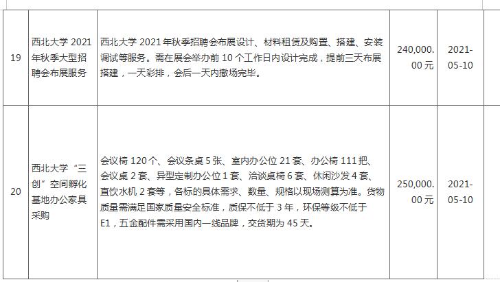 西北大学2021年拟采购项目(第二批)采购意向公示采购意向公示 作者: 编辑:党丹珩 时间:2021-04-09 为便于供应商及时了解政府采购信息,根据《财政部关于开展政府采购意向公开工作的通知》(财库〔2020〕10号)等有关规定,现将本单位即将进行项目采购的采购意向公开如下: 本次公开的采购意向是本单位政府采购工作的初步安排,具体采购项目情况以相关采购公告和采购文件为准。 西北大学 2021年04月09日 原链接地址