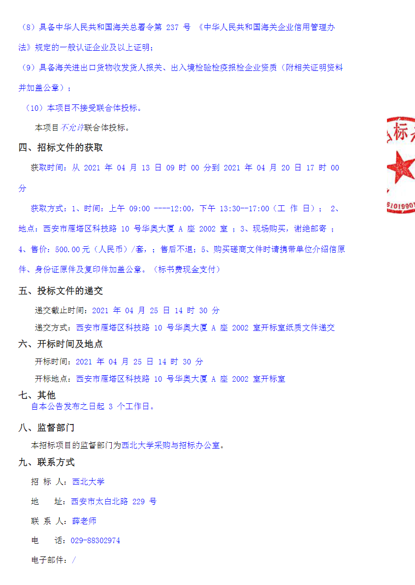 西北大学2021-2022年进口物资外贸代理机构资格遴选项目竞争性磋商公告