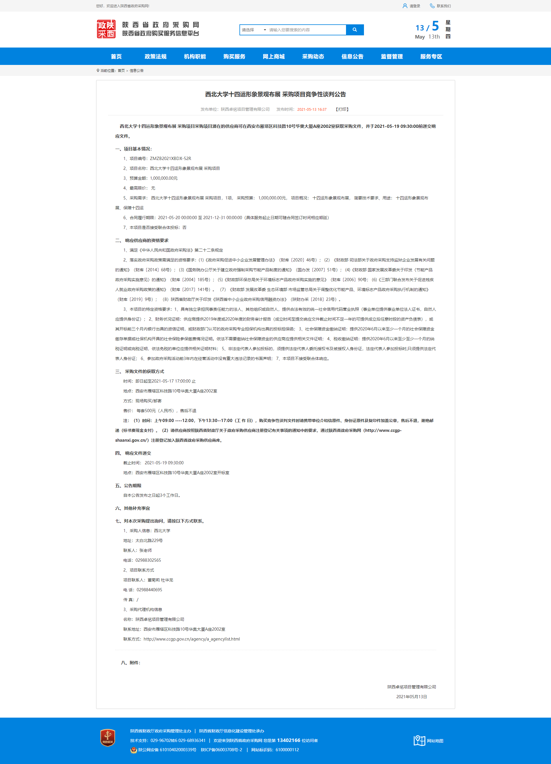 西北大学十四运形象景观布展采购项目竞争性谈判公告