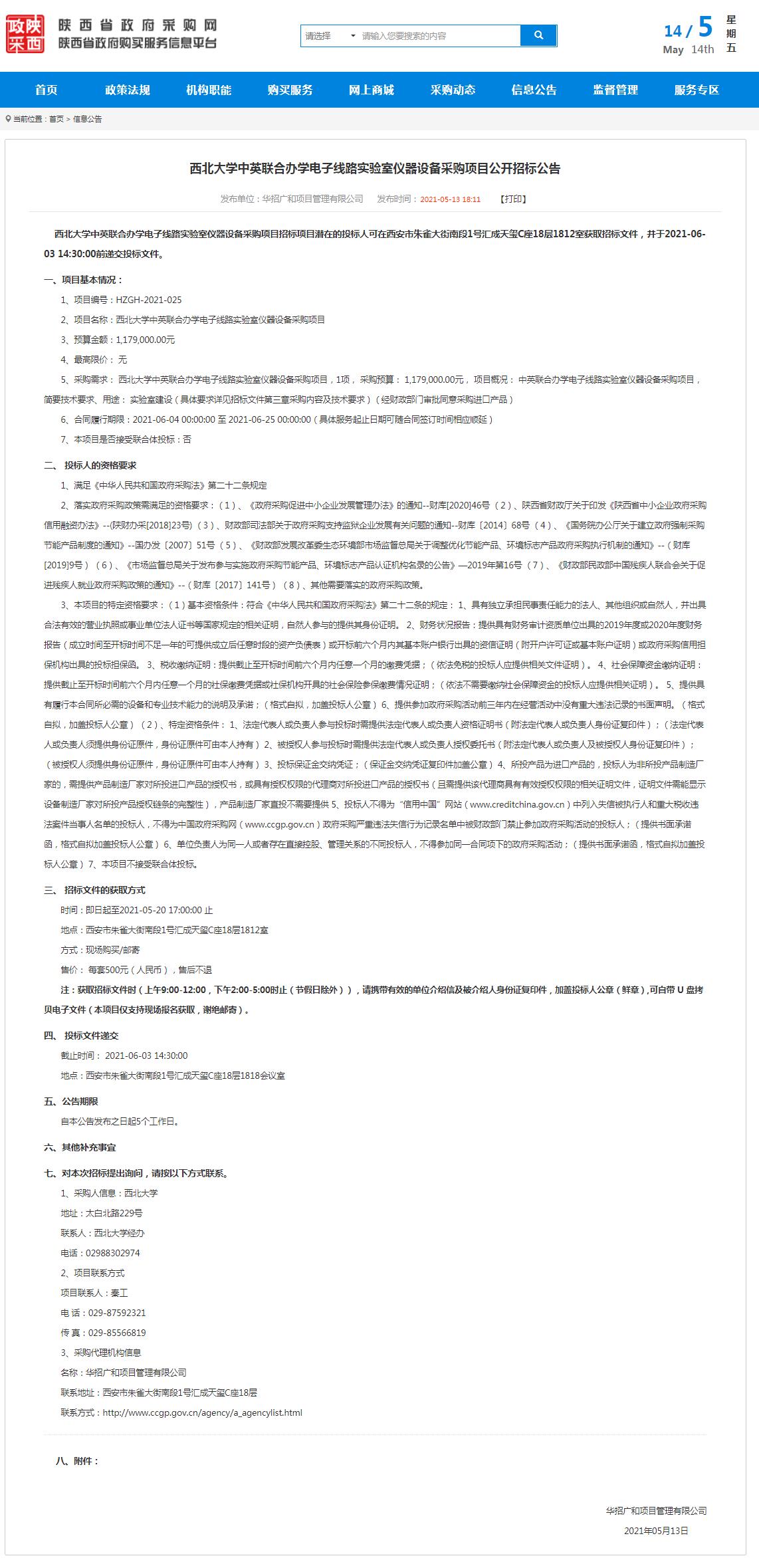 西北大学中英联合办学电子线路实验室仪器设备采购项目公开招标公告