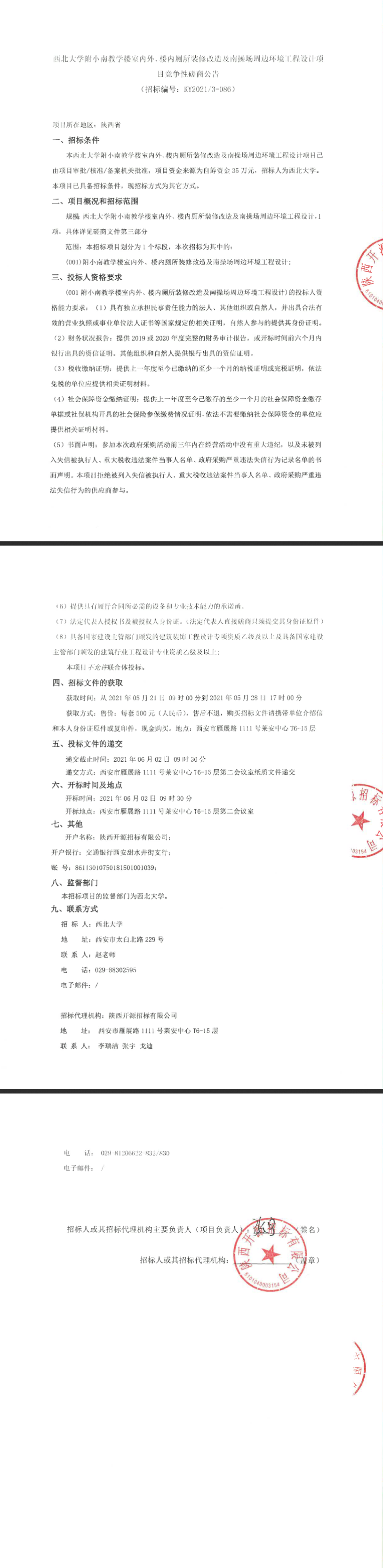 西北大学附小南教学楼室内外、楼内厕所装修改造及南操场周边环境工程设计项目竞争性磋商公告