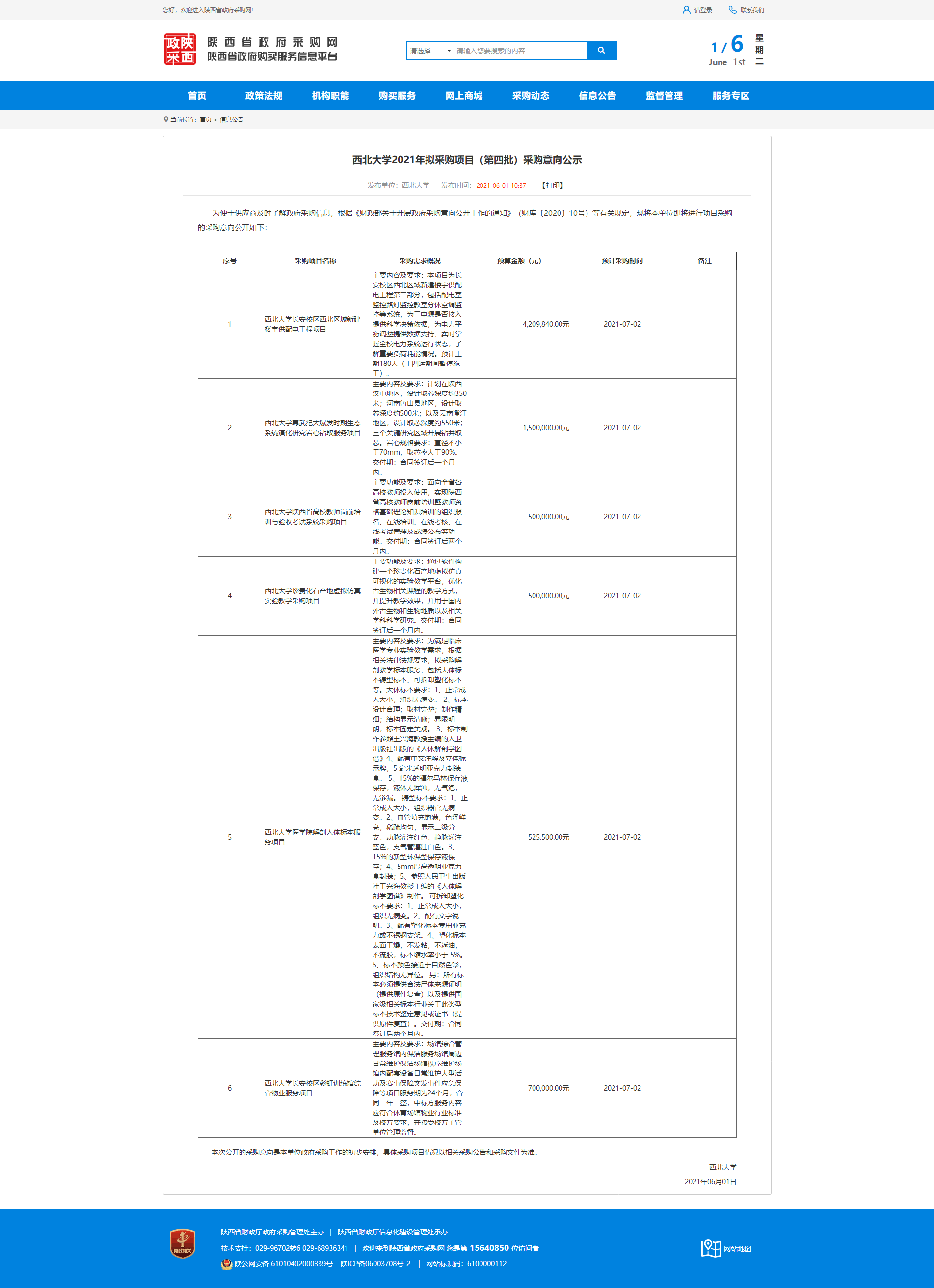 西北大学2021年拟采购项目(第四批)采购意向公示