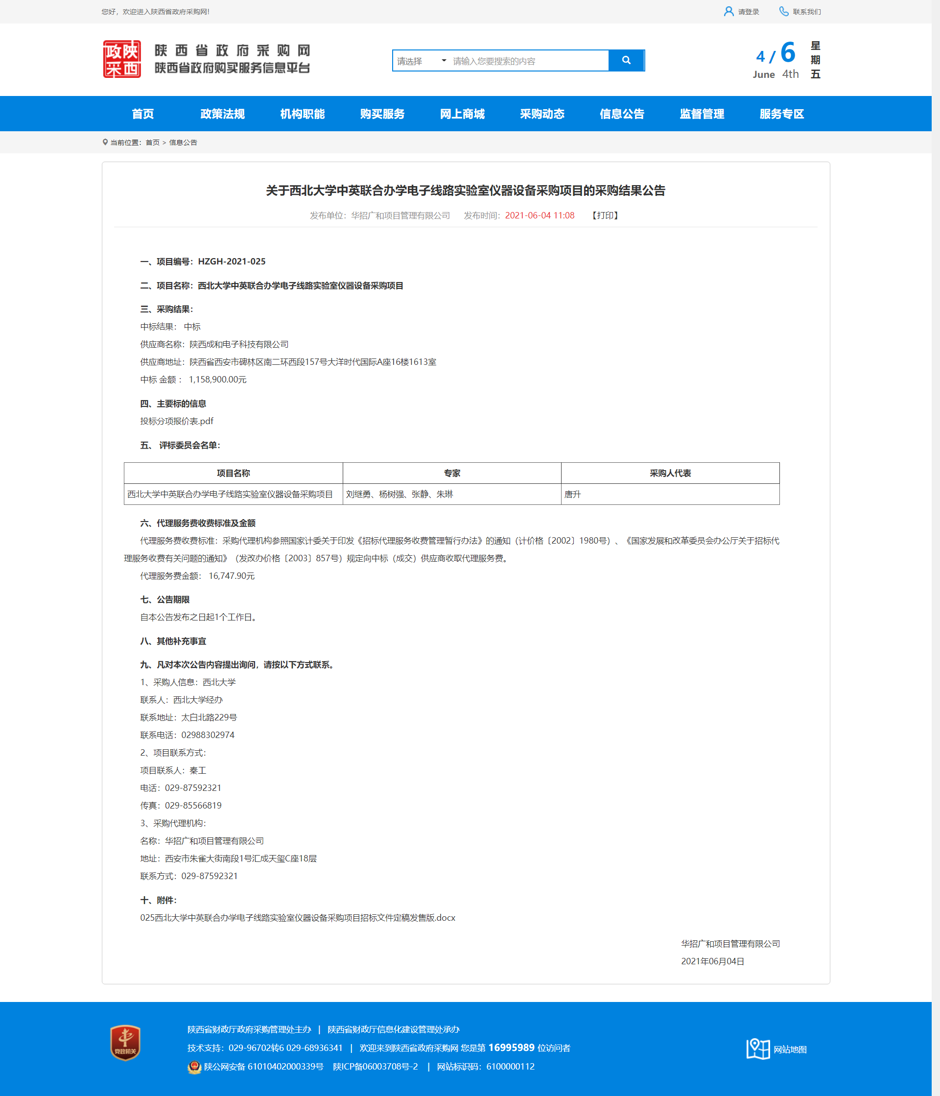 关于西北大学中英联合办学电子线路实验室仪器设备采购项目的采购结果公告 作者: 编辑:薛利娟 时间:2021-06-04 原公告地址:http://ccgp-shaanxi.gov.cn/notice/noticeDetail.do?noticeguid=8a85be32791b87da0179d4f9ca5a7372