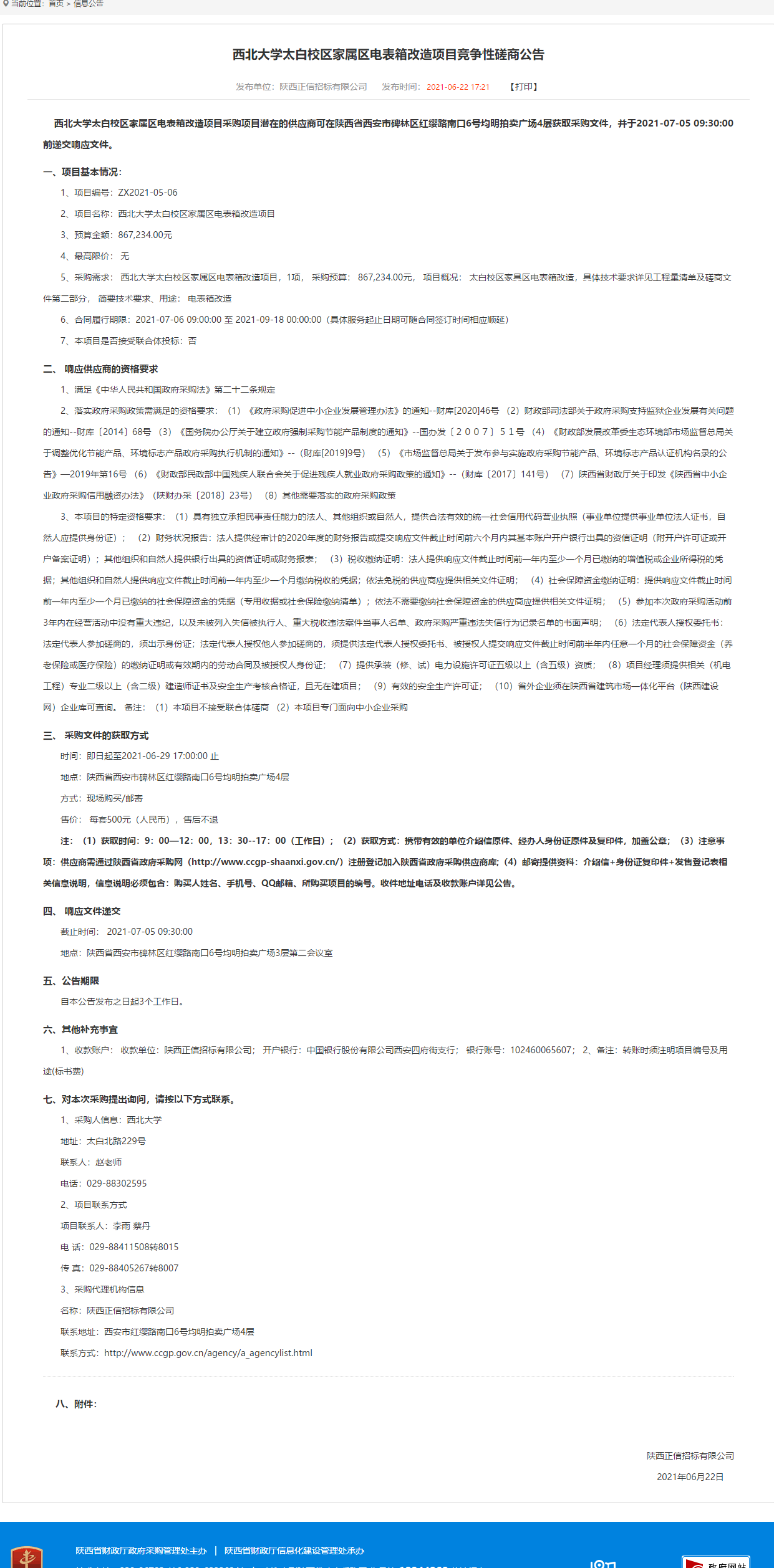 西北大学太白校区家属区电表箱改造项目竞争性磋商公告