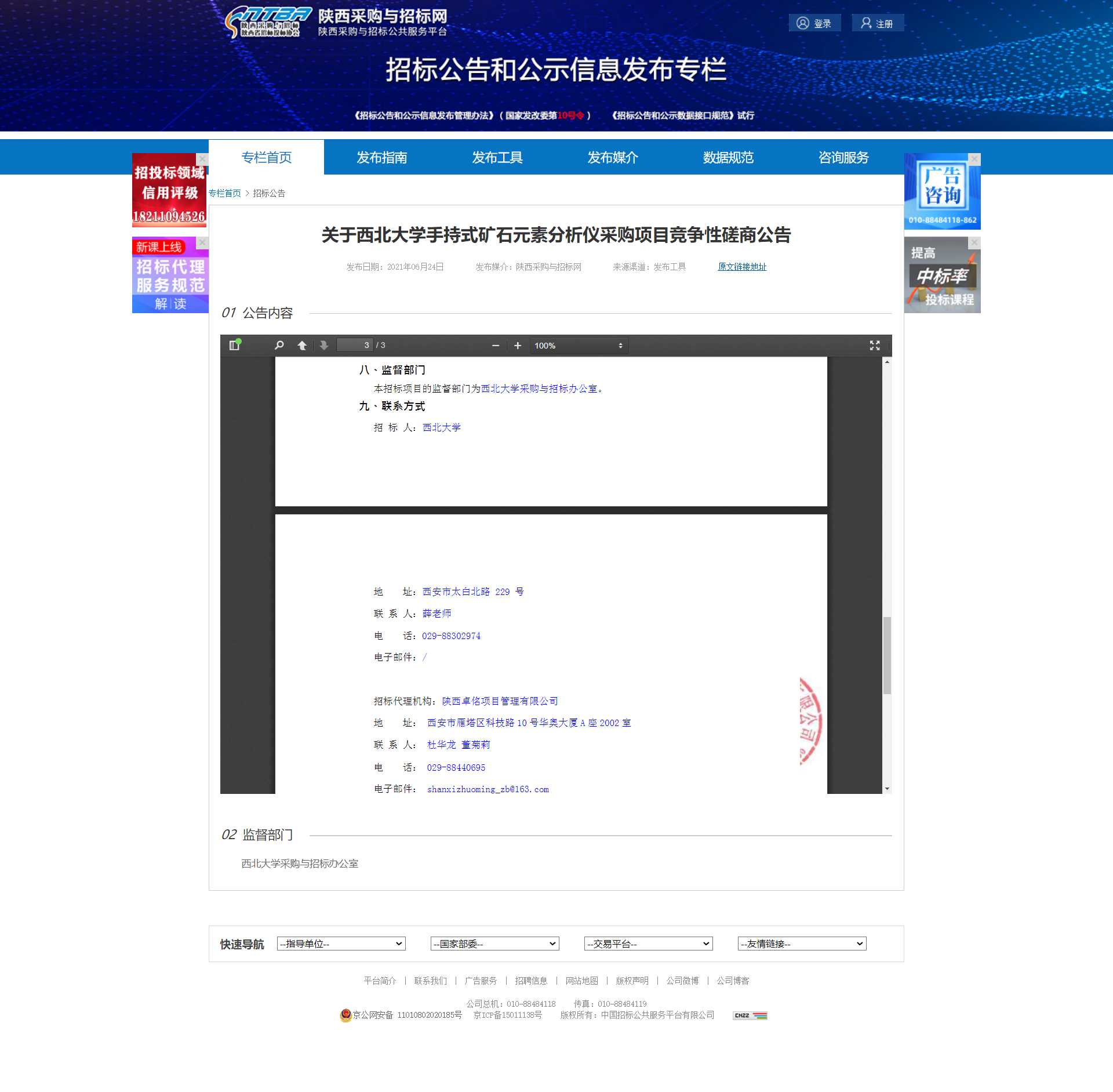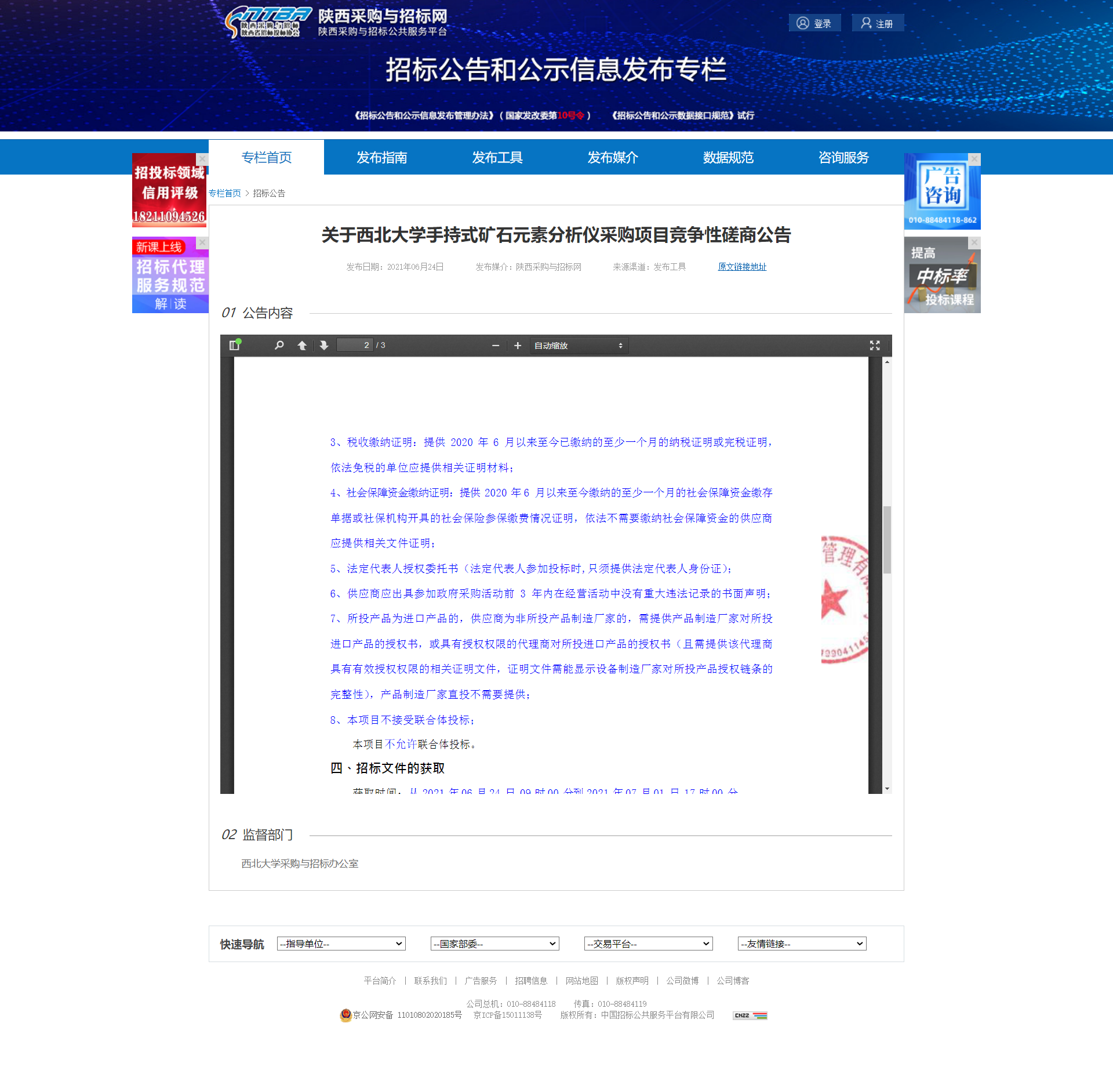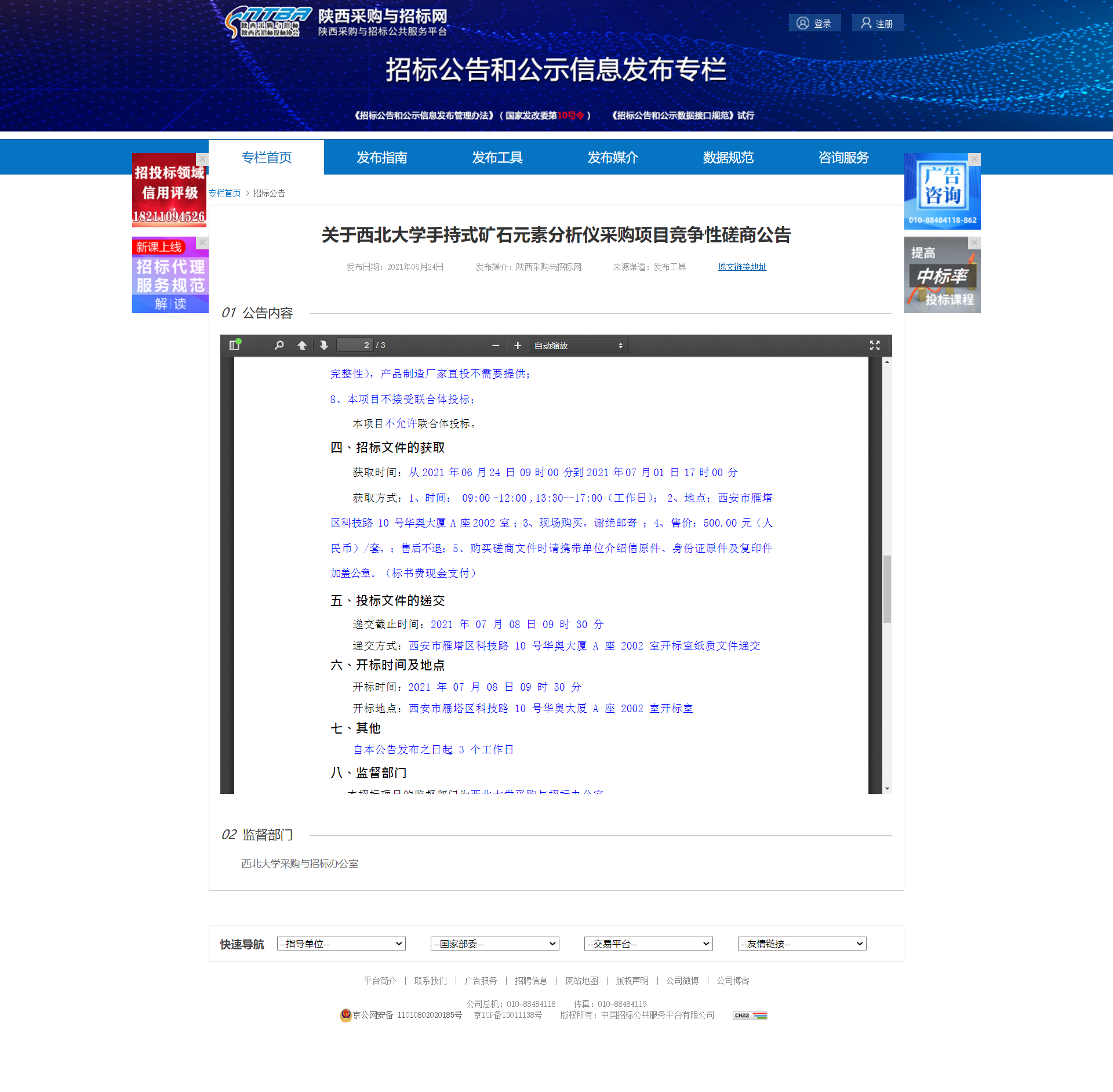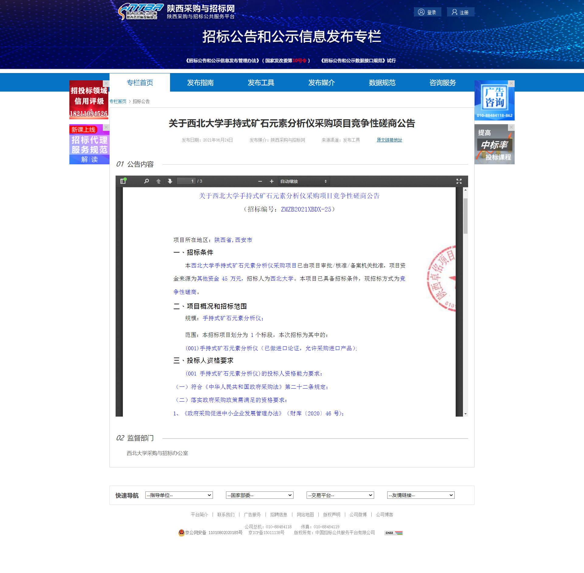 西北大学手持式矿石元素分析仪采购项目竞争性磋商公告 作者: 编辑:薛利娟 时间:2021-06-24 原公告地址:http://bulletin.sntba.com/biddingBulletin/2021-06-24/311501.html