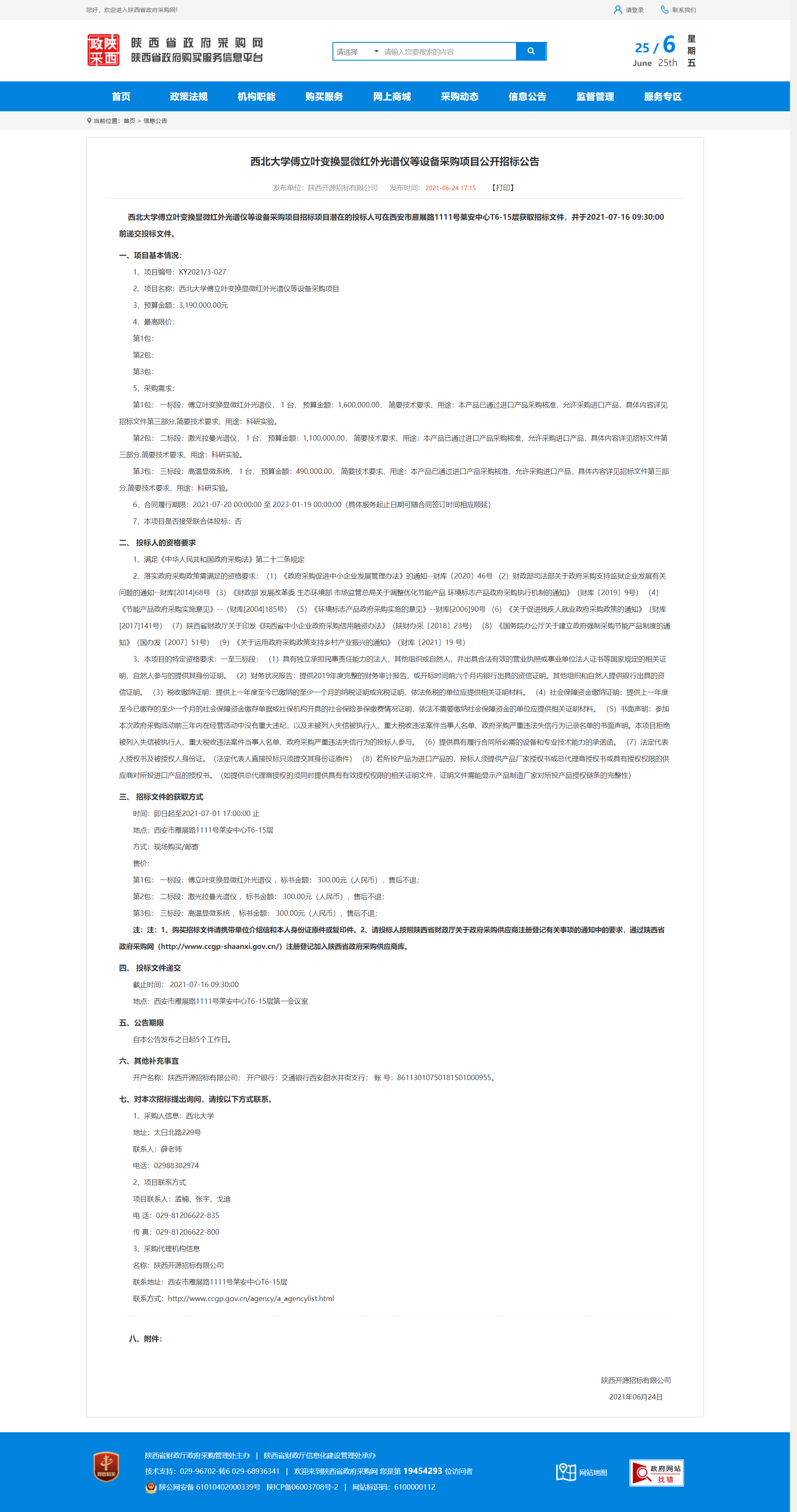 西北大学傅立叶变换显微红外光谱仪等设备采购项目公开招标公告 作者: 编辑:采购与招标办公室 时间:2021-06-25 原公告地址:http://www.ccgp-shaanxi.gov.cn/notice/noticeDetail.do?noticeguid=8a85be33791baa0f017a3d4848d345d3