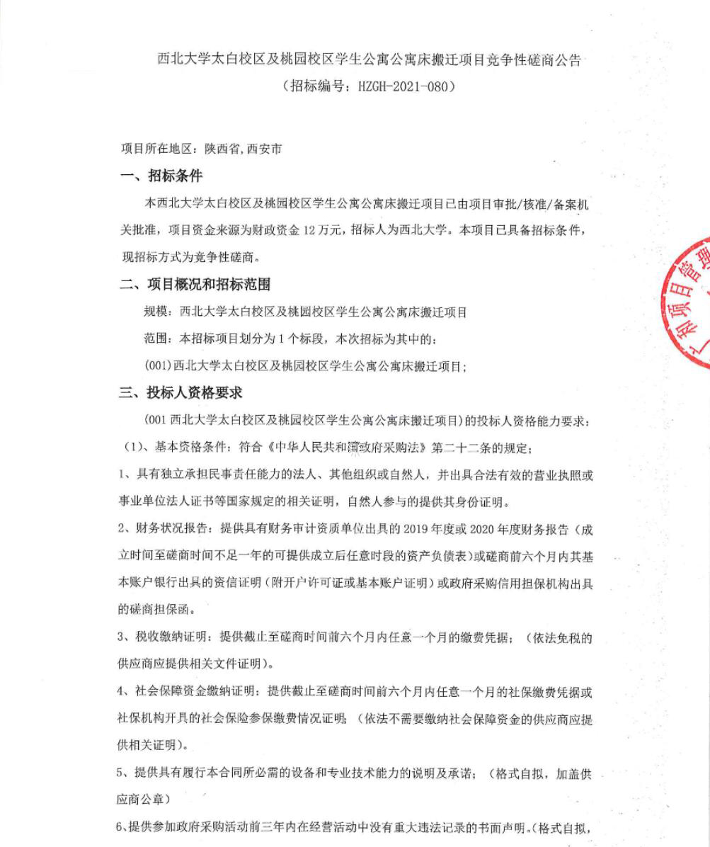 西北大学太白校区及桃园校区学生公寓公寓床搬迁项目