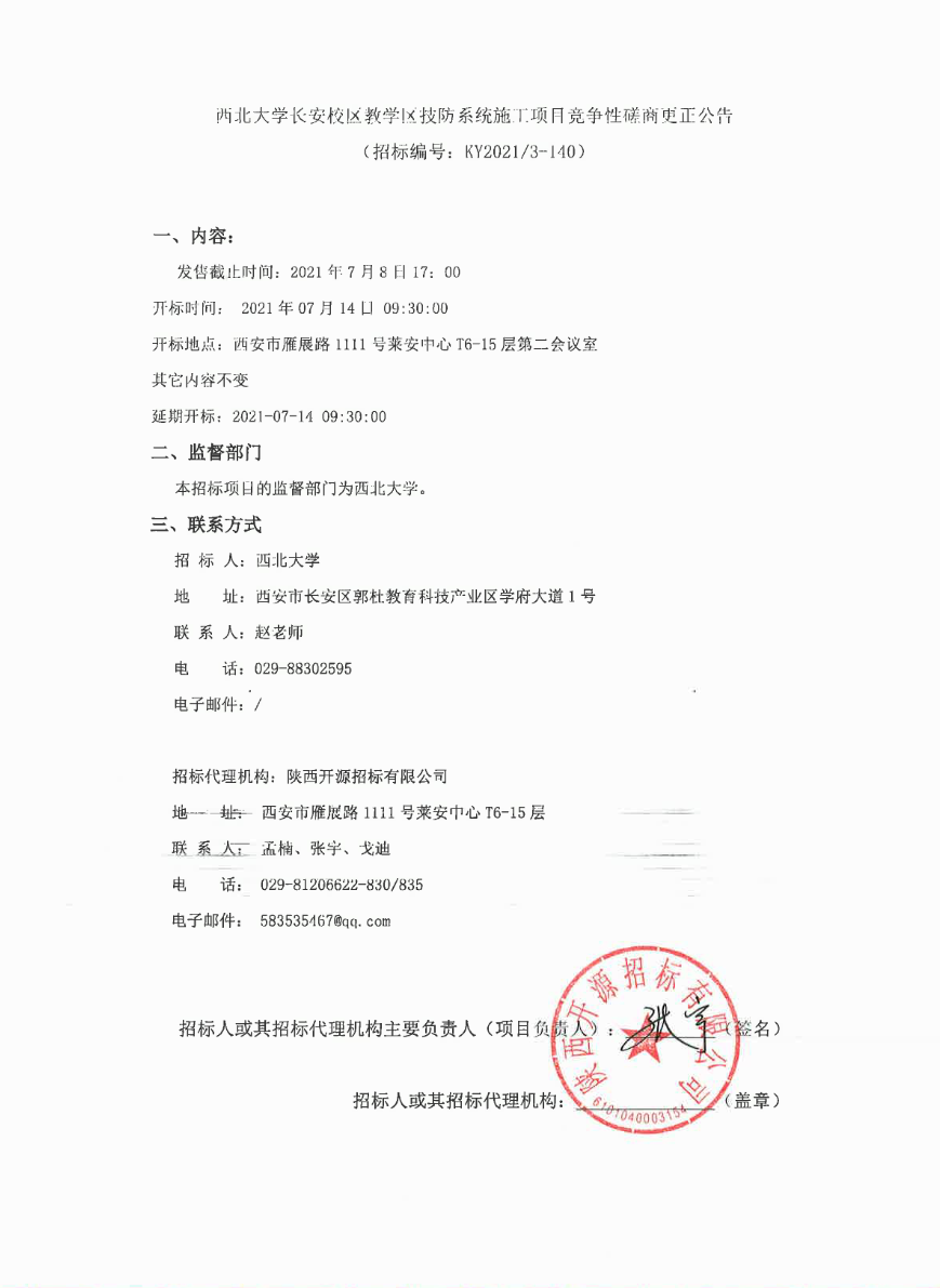 西北大学长安校区教学区技防系统施工项目竞争性磋商更正公告