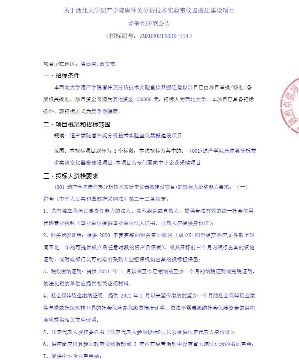 关于西北大学遗产学院唐仲英分析技术实验室仪器搬迁建设项目竞争性磋商公告
