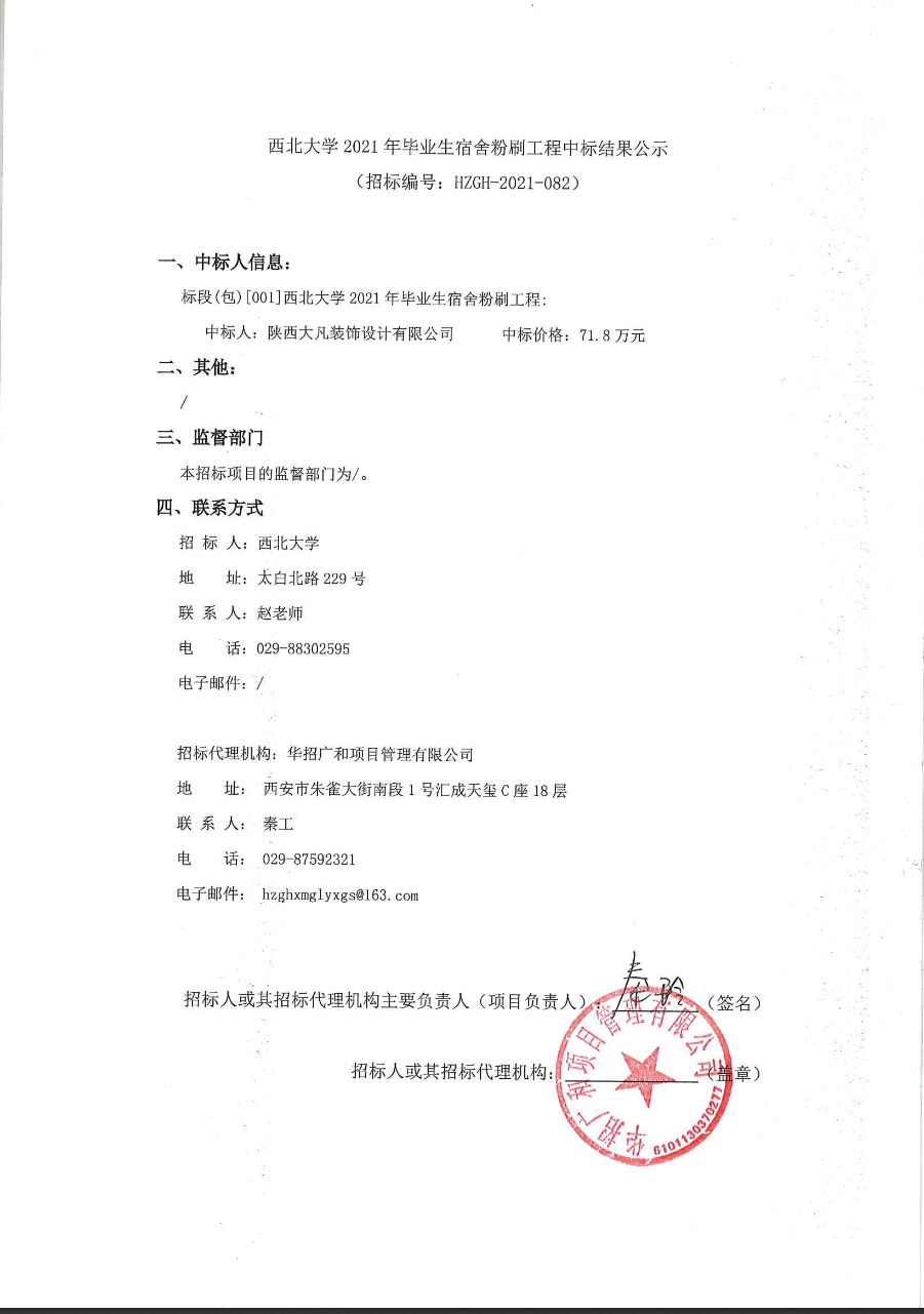 西北大学2021年毕业生宿舍粉刷工程中标结果公示