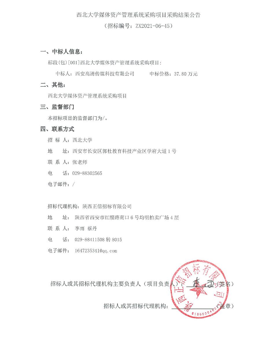 关于西北大学媒体资产管理系统采购项目采购结果公告