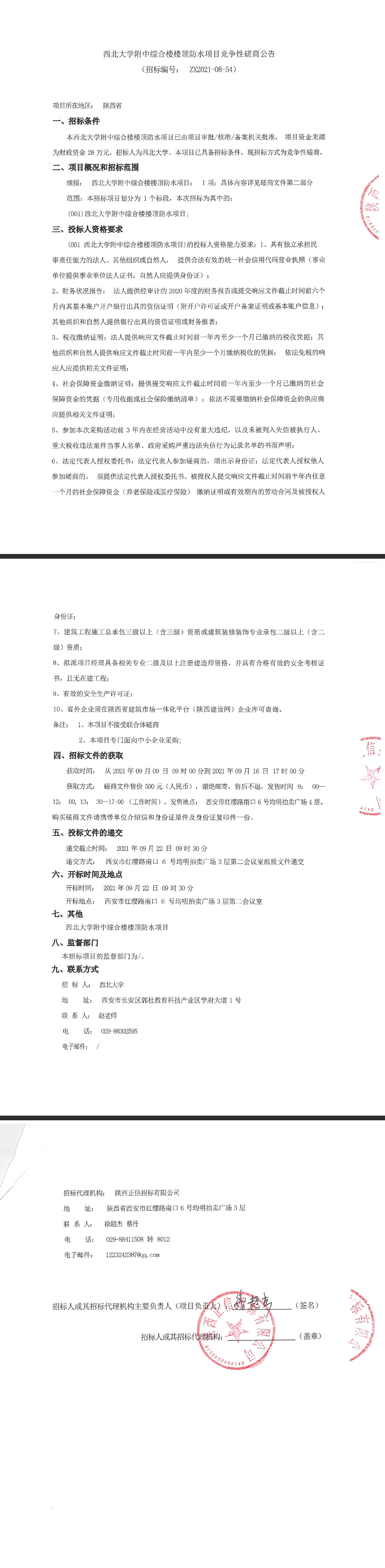 西北大学附中综合楼楼顶防水项目竞争性磋商公告