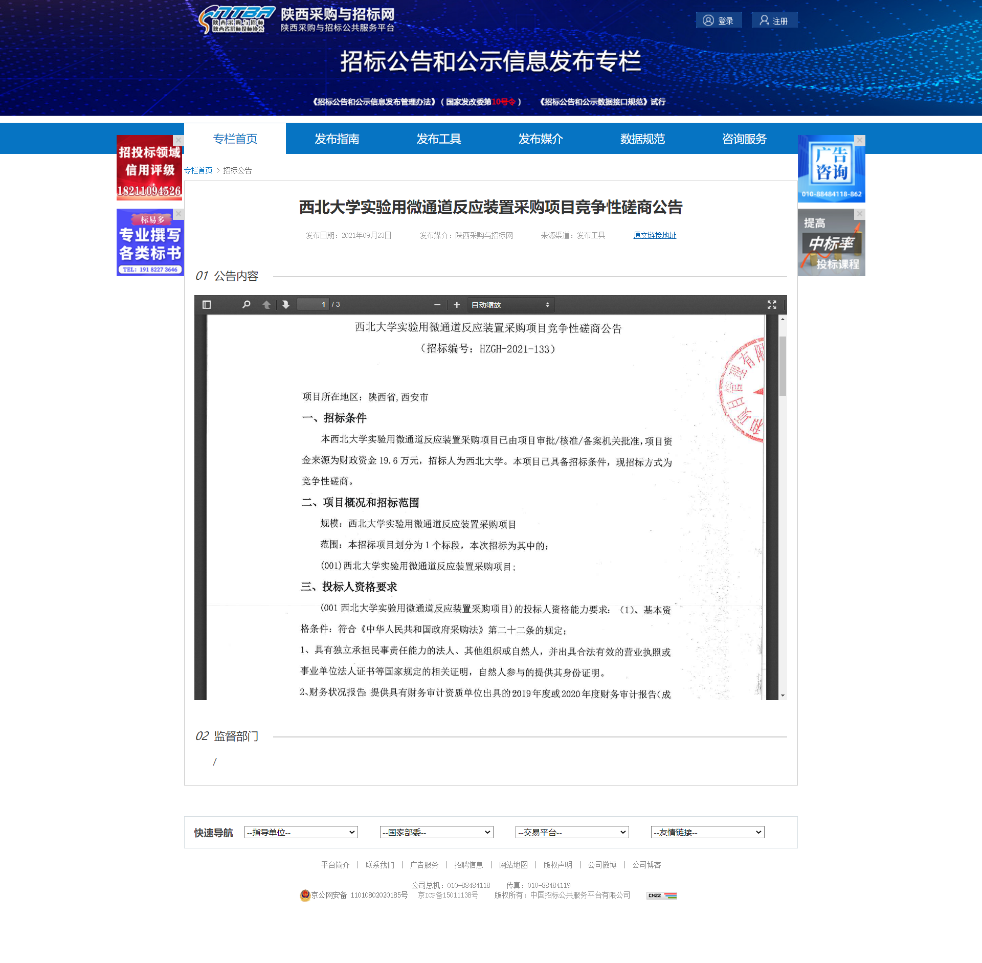 西北大学实验用微通道反应装置采购项目竞争性磋商公告 作者: 编辑:采购与招标办公室 时间:2021-09-23 原公告地址:http://bulletin.sntba.com/biddingBulletin/2021-09-23/345799.html