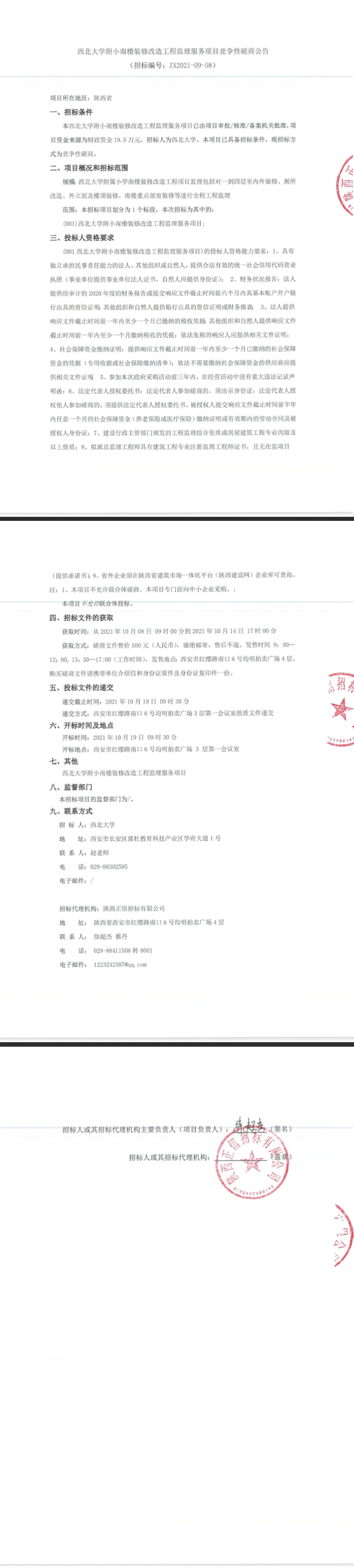 西北大学附小南楼装修改造工程监理服务项目竞争性磋商公告
