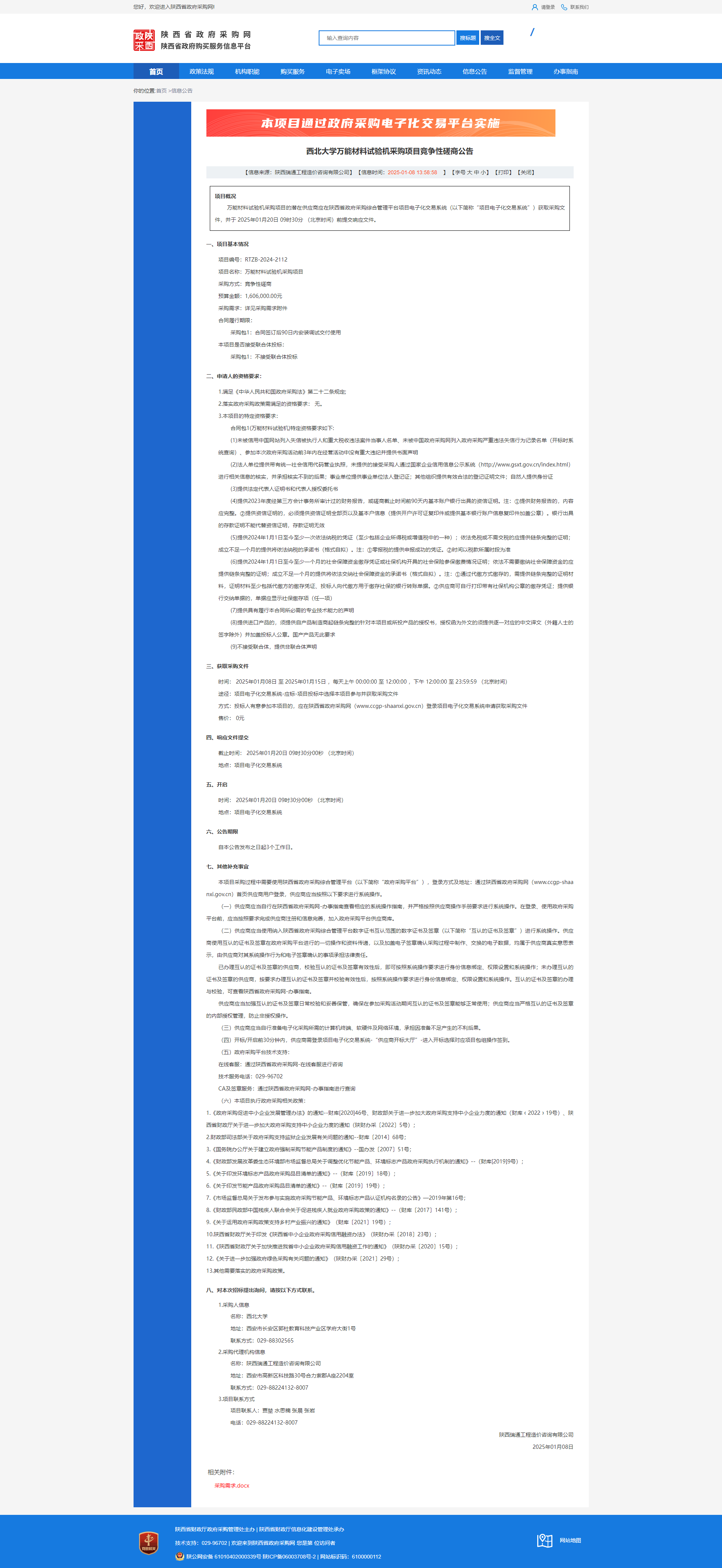 西北大学万能材料试验机采购项目竞争性磋商公告